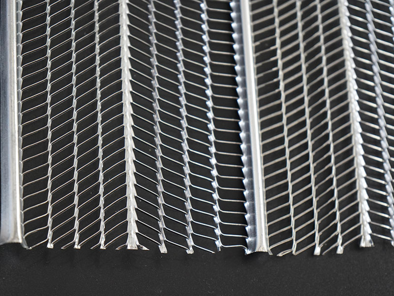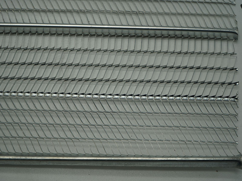 免拆灌漿網:一張完整的免拆模板網包括連續凸起的V型網骨及鋼網面二部份。V型網骨勁度,連續平行排列的V型網骨為鋼網強度的主要來源。鋼網可沿V型平行方向弧形彎曲。鋼網面上具有整齊的沖孔,沖孔上有凸起的牙板具有加強鋼網與材料間的結合之功能。